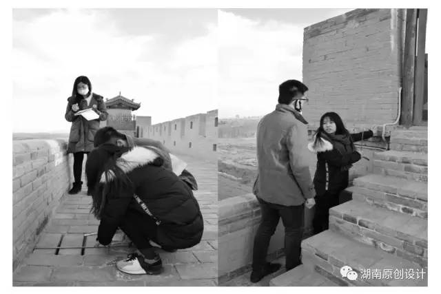 同学们分别分成三部分对嘉峪关进行测绘