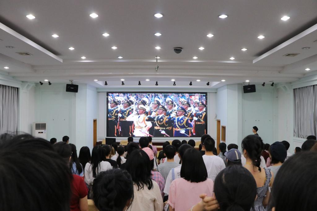 许杭平表示,组织学生集中观看庆祝活动,是为深入爱国主义教育,弘扬爱国主义精神,让我们的同学们树立爱国情怀、弘扬爱国热情,充分认识到当代大学生为祖国更加强大、为实现中华民族伟大复兴的中国梦所肩负的历史责任和使命。