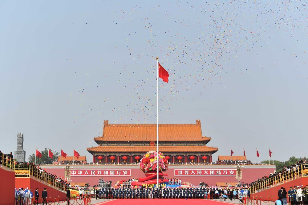 10月1日上午,庆祝中华人民共和国成立70周年大会在北京天安门广场隆重举行,20余万军民以盛大的阅兵仪式和群众游行欢庆共和国70华诞。